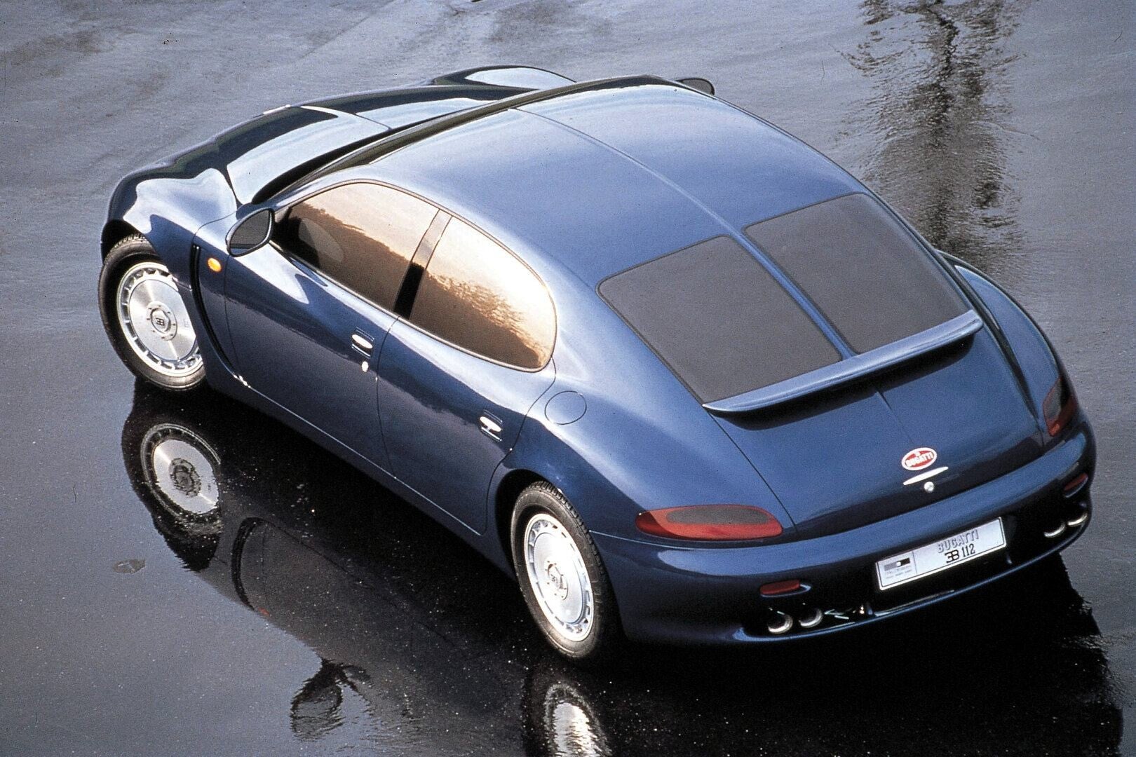Bugatti S.p.A encargó a Giorgetto Giugiaro de Italdesign Giugiaro la creación de una versión full-size sedán del deportivo EB 110. El resultado fue el EB 112, que era un coche de cuatro puertas de estilo retro con la parte trasera en pendiente, que recordaba a los modelos Bugatti más antiguos, como el conocido Type 57 Galiber. La carrocería estaba realizada completamente en aluminio, con un chasis de fibra de carbono, compartido con el EB 110.