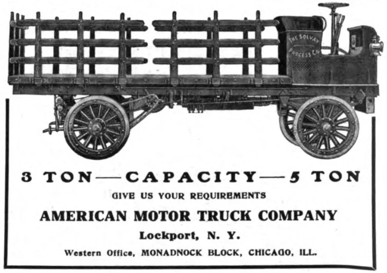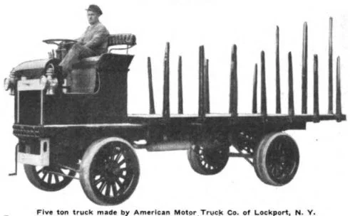 La American Motor Truck Company de Lockport, Nueva York, inició la producción de camiones estadounidenses eléctricos y de gasolina en 1906. Inicialmente, los camiones estadounidenses estaban disponibles en capacidades de entre 1 y 5 toneladas. Para 1909, se ofrecían en tres tamaños: 2, 3 y 5 toneladas.