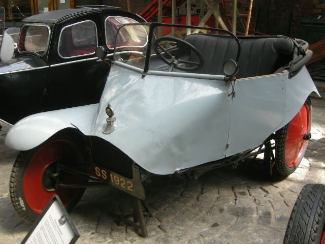 Un vehículo se exhibe en la Cité de l'Automobile – Musée National – Collection Schlumpf de Mulhouse . Este modelo cuenta con un motor bicilíndrico de 573 cc y 12 CV de potencia .