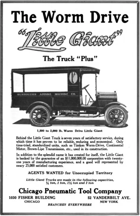Anuncio de 1916 del camión Little Giant de Chicago Pneumatic