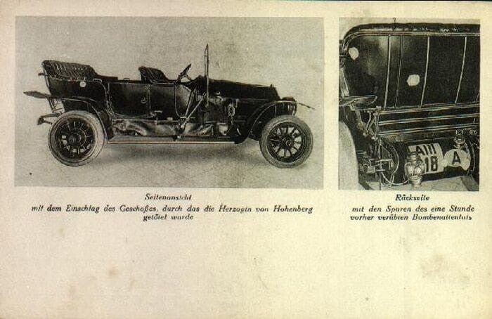 El faetón doble Gräf & Stift Bois de Boulogne, modelo 1911, en el que viajaba el archiduque Francisco Fernando en el momento de su asesinato el 28 de junio de 1914.