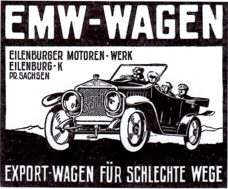 Hacia 1902, el empresario Dürr fundó una fábrica de motores en la localidad suburbana de Kültzschau, cerca de Eilenburg . La empresa Dürr Motor Company tuvo dificultades iniciales, lo que provocó un cambio de propietario ya en 1905. Max Alverdes, ingeniero mecánico de Hamburgo , adquirió todas las acciones a más tardar en 1909 y renombró la compañía como Eilenburg Motor Works AG (EMW). Bajo la nueva dirección, la situación financiera de la empresa mejoró significativamente. Casi al mismo tiempo que Alverdes se convirtió en el único accionista, comenzó la producción de automóviles en Eilenburg. Por ejemplo, EMW expuso en la Exposición Internacional del Automóvil de Berlín en 1909 .
