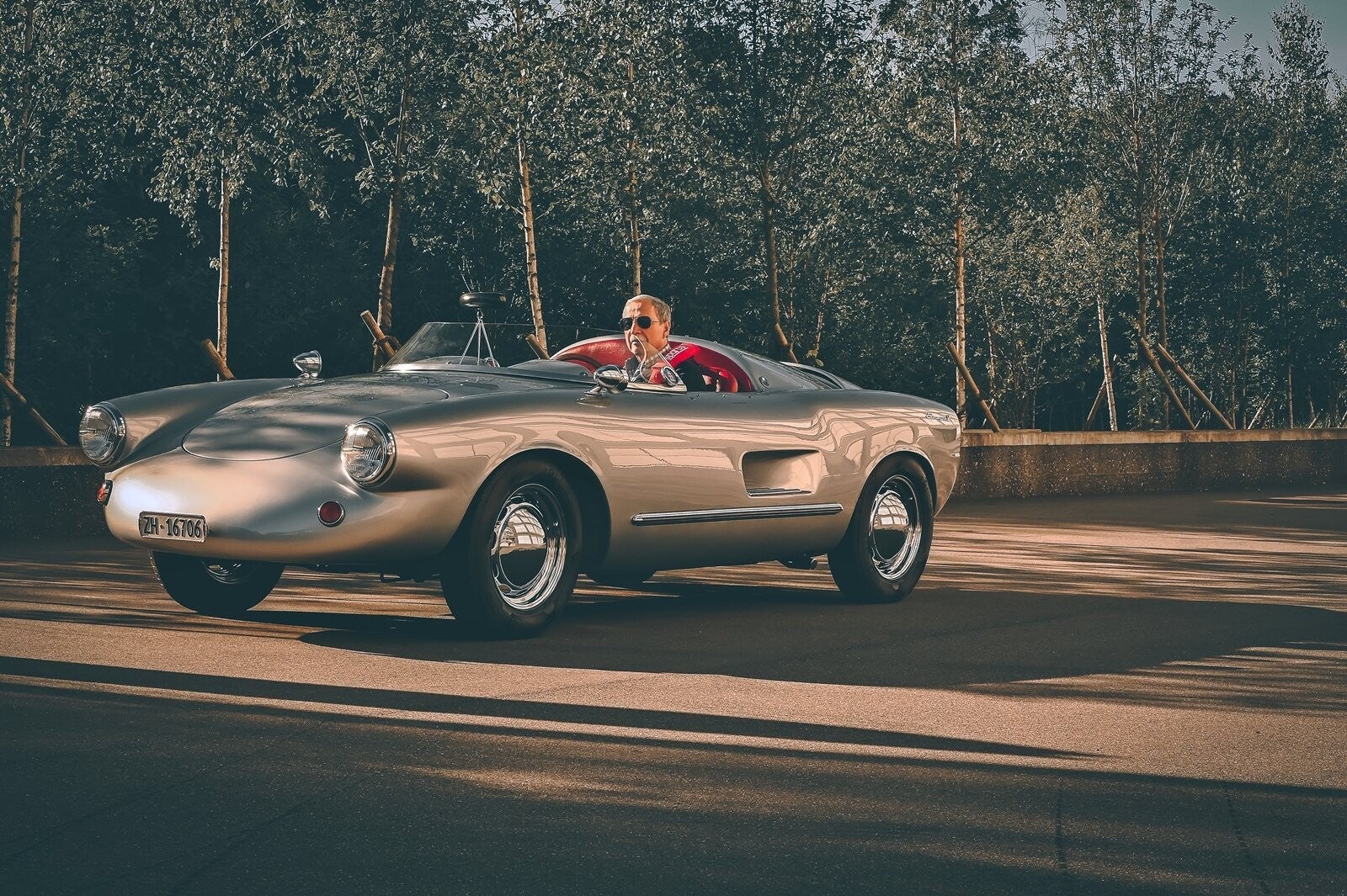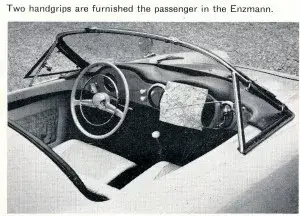 En 1953, el médico rural suizo e ingeniero aficionado Dr. Emil Enzmann diseñó un deportivo descapotable, inspirado en el Porsche 550 Spyder . La carrocería , monobloque (de una sola pieza) de plástico reforzado con fibra de vidrio , se atornilló a un chasis de VW . Para reducir el peso, se omitieron las puertas, lo que también simplificó la construcción de la carrocería.