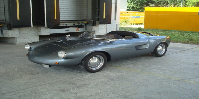 Enzmann 506 , fabricado en 1957, carrocería de plástico basada en un VW Beetle. Foto Palauenc05