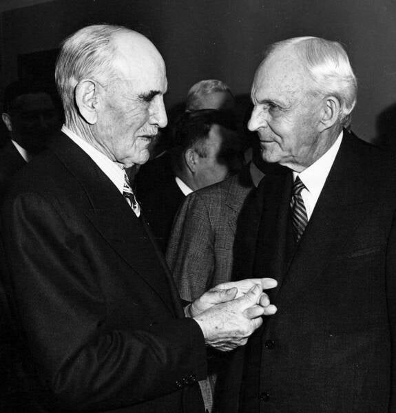 Nash y Henry Ford en el Jubileo del Automóvil de 1946, cuando ambos tenían 82 años.