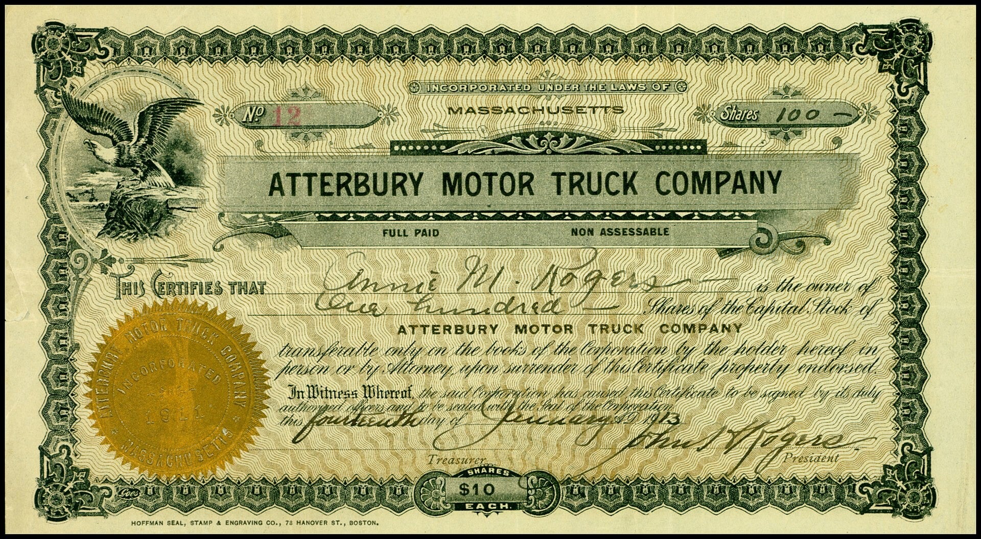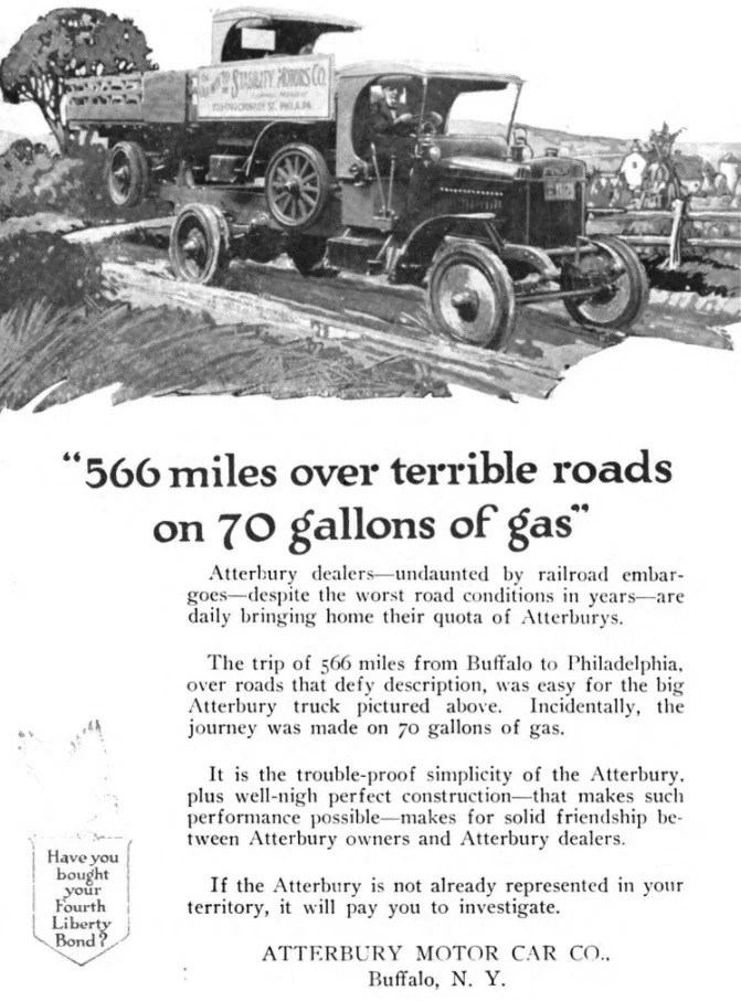 A finales de 1910, la marca volvió a llamarse Atterbury . Los camiones tenían una capacidad de carga de entre 1,5 y 7 toneladas. Diversos motores de gasolina de Buda , Continental y Lycoming impulsaban los vehículos.
