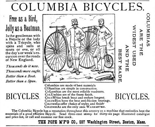 La Pope Manufacturing Company fue un fabricante estadounidense de bicicletas , motocicletas y automóviles . La compañía fue fundada por Albert Augustus Pope alrededor de 1876 en Boston , Massachusetts , y se constituyó en Hartford , Connecticut , en 1877. La fabricación de bicicletas comenzó en 1878 en Hartford en la fábrica de Weed Sewing Machine Company. De 1905 a 1913, Pope consolidó gradualmente la fabricación en una planta en Westfield, Massachusetts , mientras que las oficinas principales permanecieron en Hartford. La compañía cesó la producción de automóviles en 1915 y cesó la producción de motocicletas en 1918, y posteriormente experimentó una variedad de cambios en forma, nombre y líneas de productos. Su marca de bicicletas Columbia , comercializada por primera vez a fines de la década de 1870, continúa vendiéndose activamente.