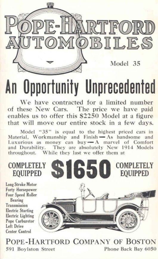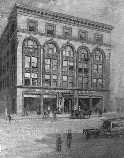 Aunque Pope Manufacturing había presentado su solicitud de constitución en Connecticut, continuó estableciendo sus oficinas y muchas de sus operaciones en Boston. Albert y Edward Pope operaban una fábrica en 87 Summer Street en Boston ya en 1874 para la producción de máquinas manuales para liar cigarrillos.