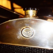 Primer plano que muestra el emblema del radiador Nelson en color (1920)