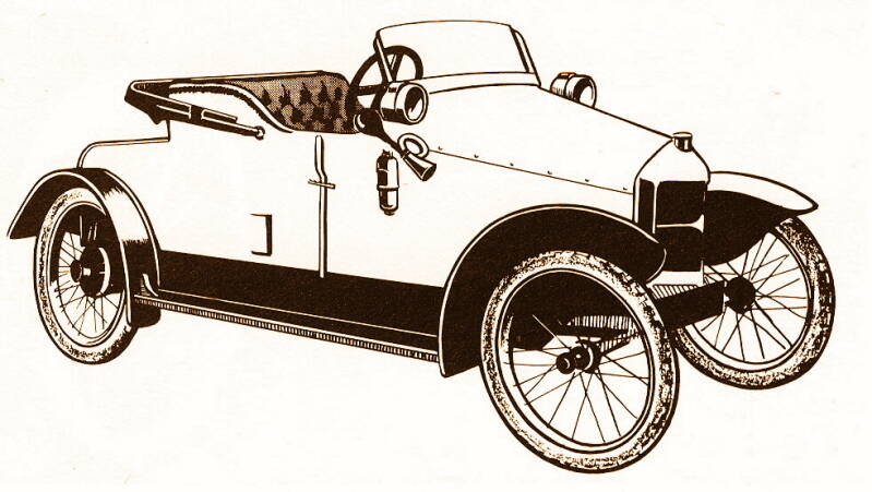 Los modelos iniciales de 1912 tenían carrocería de dos o cuatro plazas y estaban propulsados por un motor JAP V-twin de 1100 cc y 8 CV montado en la parte trasera, que accionaba el eje trasero mediante cadenas. Las carrocerías formaban una sola pieza con el chasis. El ciclomotor de cuatro plazas era una rareza en el mercado. La distancia entre ejes era de 2438 mm.