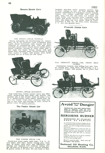 Una serie de modelos era de vapor y contaba con transmisión por cadena. Se conoce un Surrey de 1901. En 1902, se ofrecieron las carrocerías roadster ligero , Touring Wagon , Surrey y Speed Wagon . En 1903, solo había un roadster ligero en la gama.