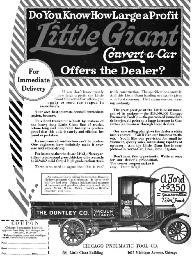 Anuncio de 1916 del camión Little Giant de Chicago Pneumatic