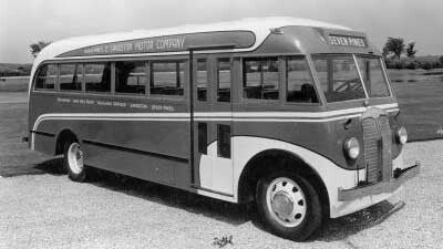 Autobús Fitzjohn de 1949 en exhibición en la Terminal de Autobuses de Pasajeros de Oriente en la Ciudad de México