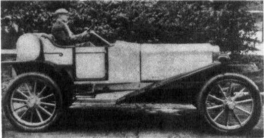 Coche de carreras Marion con inscripción en el radiador grande (1909)