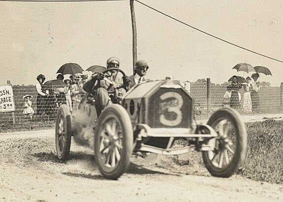32 Knox (EE. UU.) conducido por Fred Belcher en la carrera de la Copa Vanderbilt de 1910