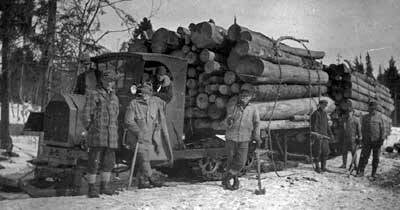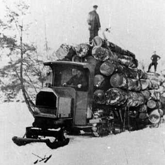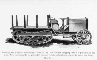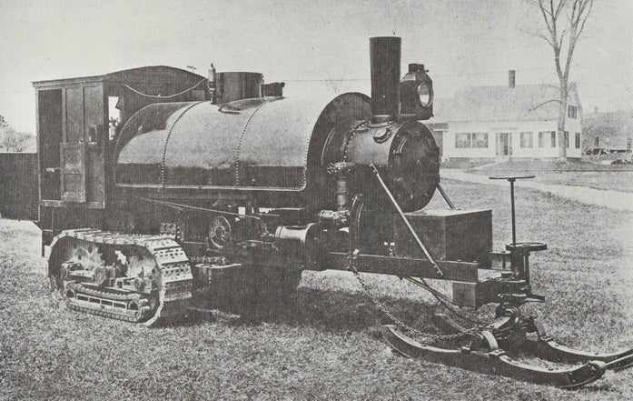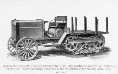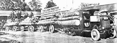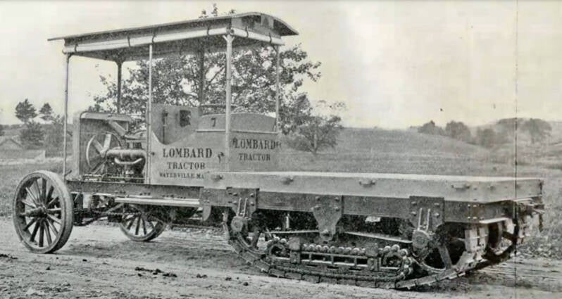 Transportador de troncos con orugas y patines a vapor Lombard R&N Fraser