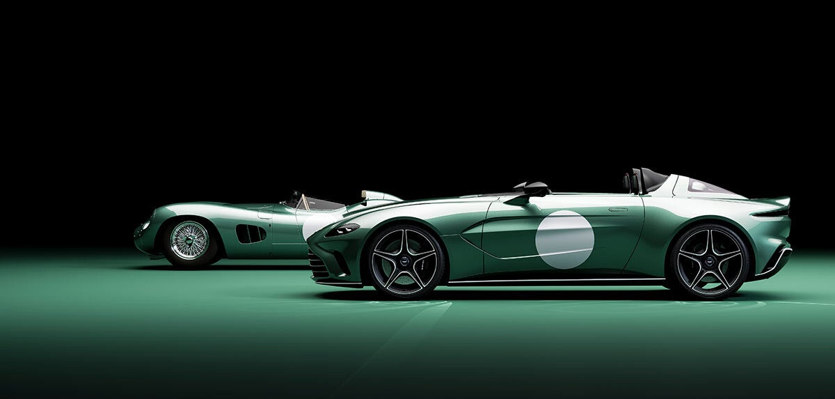 Todo se ha gestado en fibra de carbono y se inspira en tres fuentes principales: el modelo de competición DBR1, ganador de las 24 Horas de Le Mans de 1959, el prototipo CC100 Speedster de 2013 y un icónico avión de combate, el McDonnell Douglas F/A-18 Hornet. El interior también utiliza fibra de carbono estructural y, junto con el cuero habitual, el aluminio cepillado y el cromo, también presenta piezas de goma impresas en 3D.