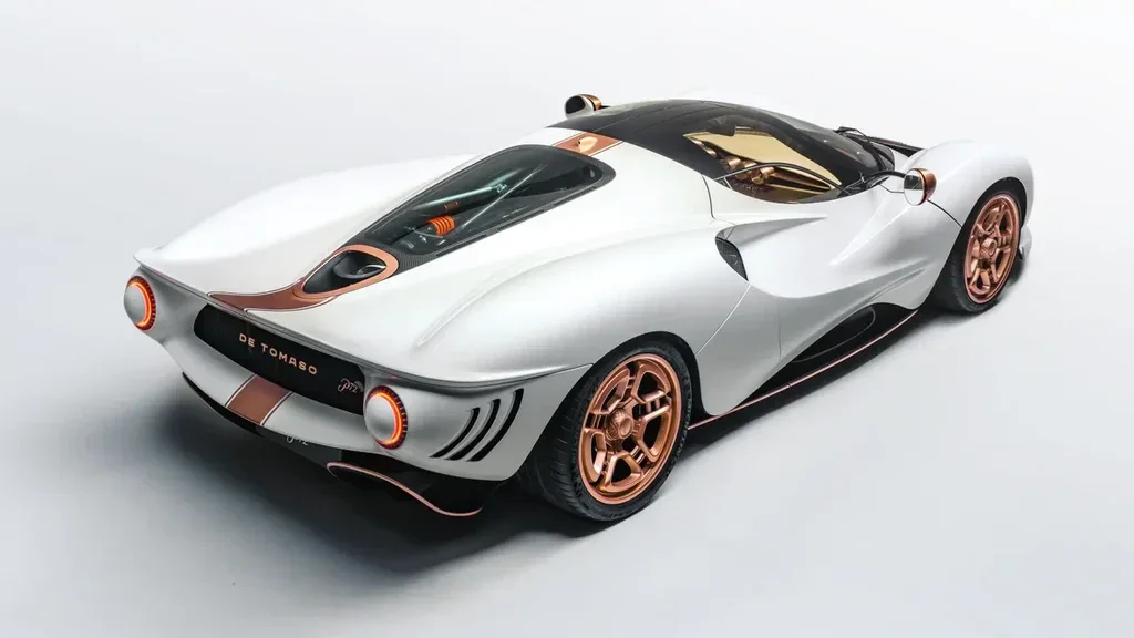 Inspirado en el P70. Con un motor V8 de 5.0 litros y 700 cv y 818 Nm de par, sobrealimentado por Roush Performance. Toda esta potencia se envía exclusivamente a las ruedas traseras a través de una transmisión manual de seis velocidades desarrollada internamente por De Tomaso.